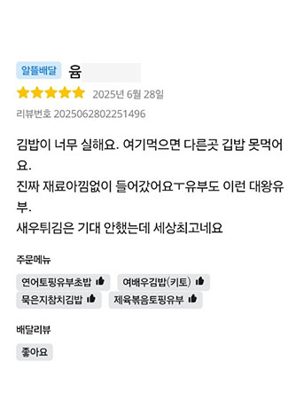 매일 먹어도 질리지 않는 김밥의 맛!